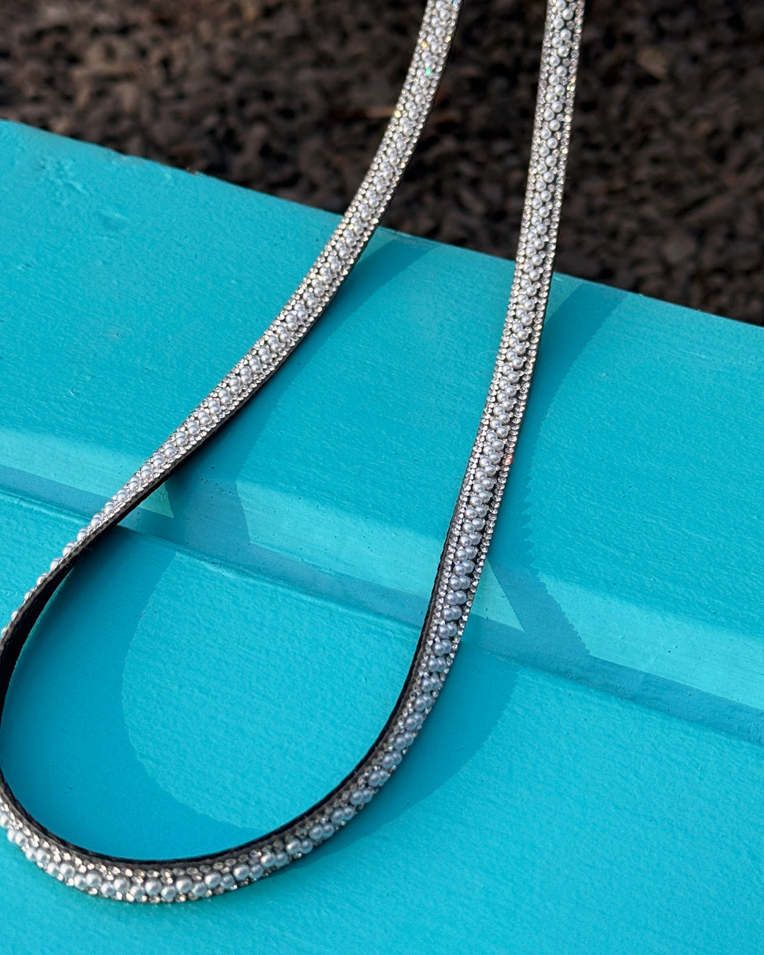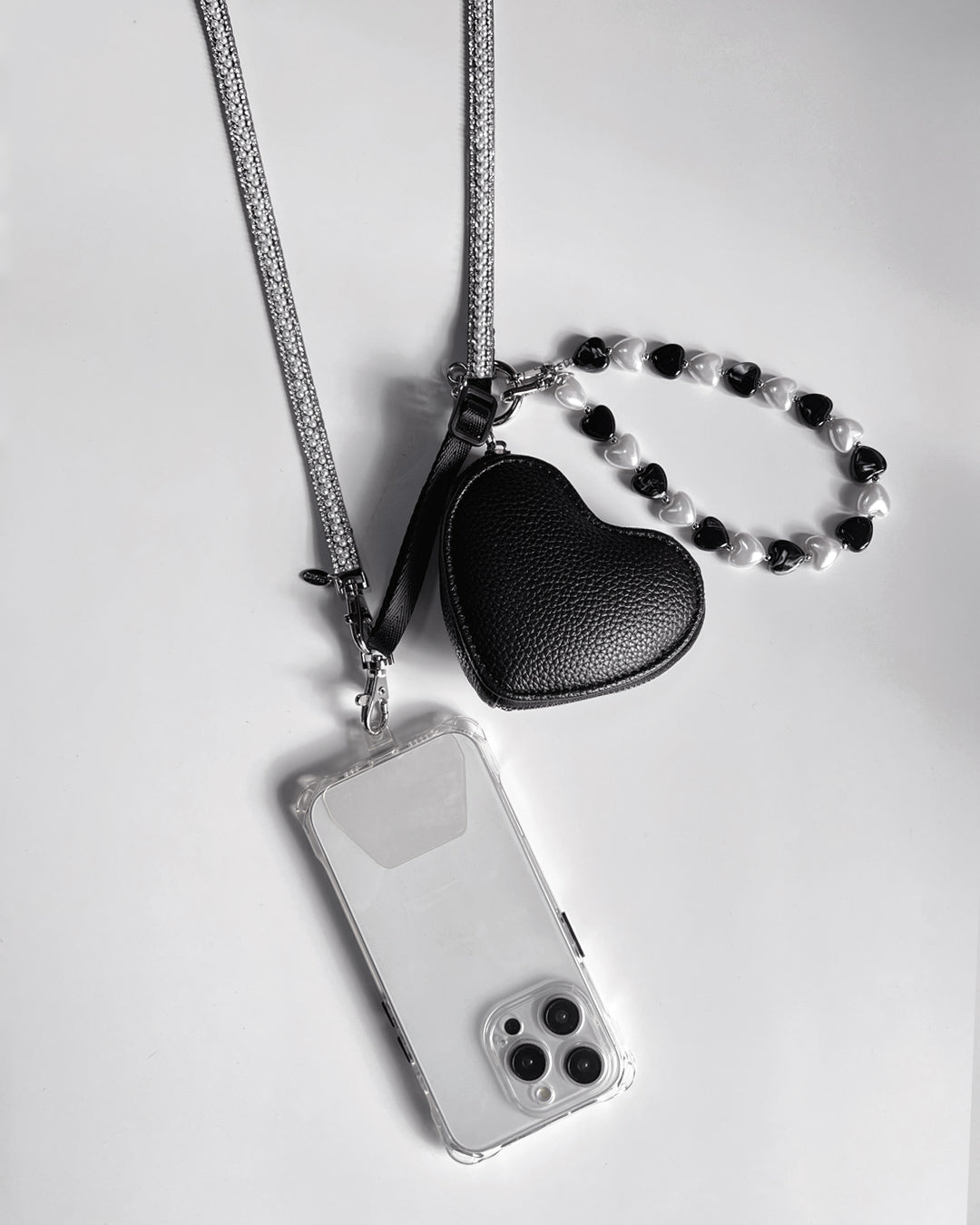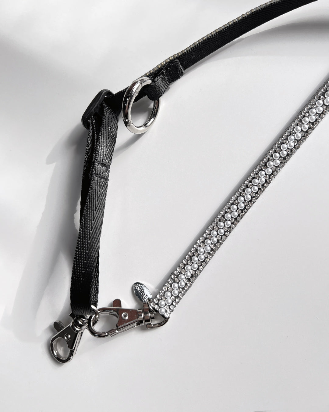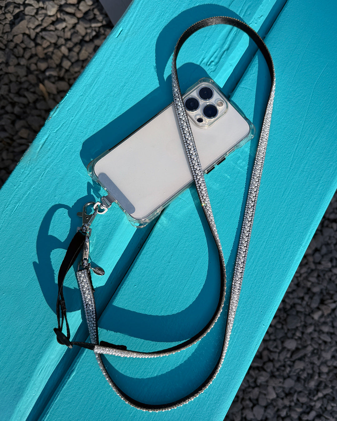 パールビジューがキラキラと輝くスマートフォン用ショルダーストラップ。