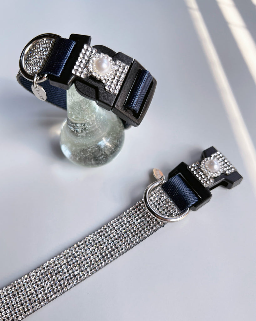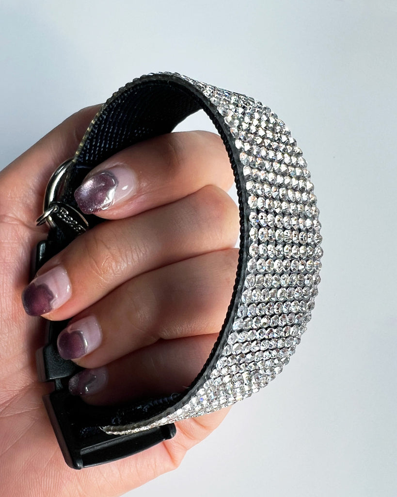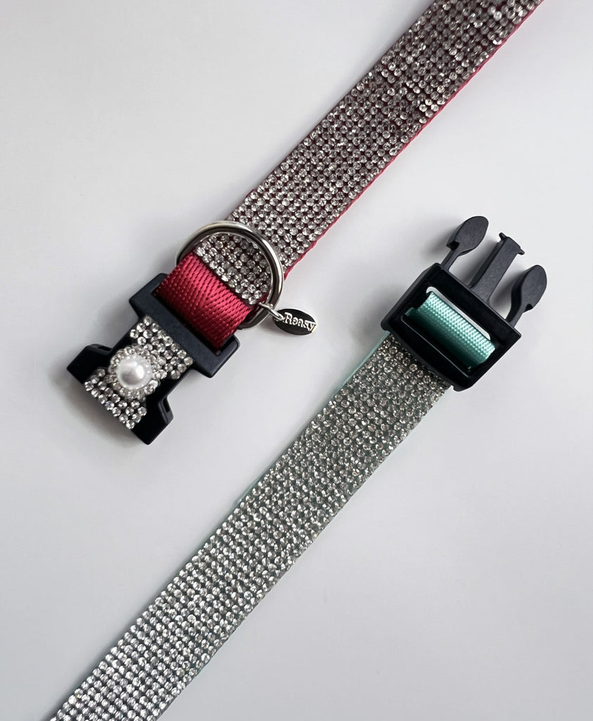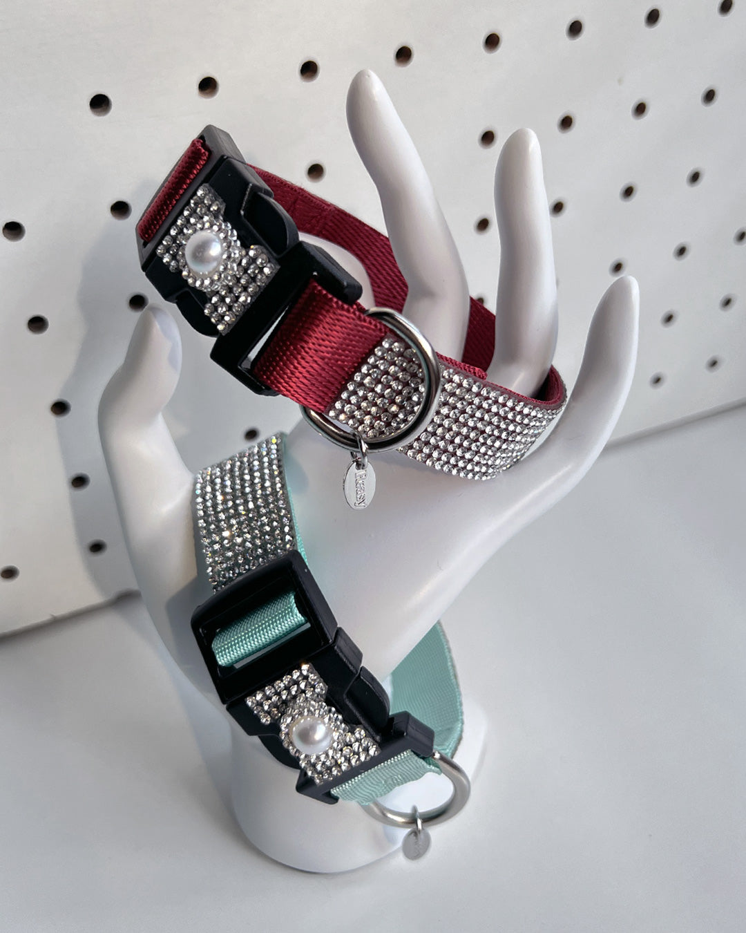 ラインストーンをぐるりと一周贅沢に敷き詰めた、わんちゃん用カラー。
